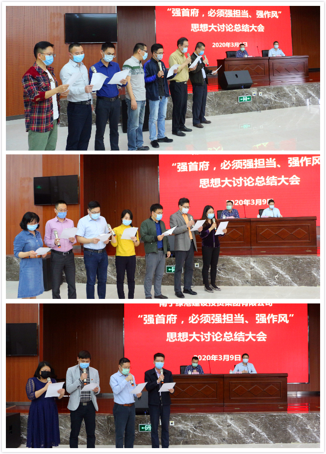 最后,集團(tuán)黨委書記、董事長(zhǎng)龔國(guó)強(qiáng)對(duì)本次思想大討論活動(dòng)開展情況進(jìn)行了總結(jié)點(diǎn)評(píng),并要求各部門、各子公司認(rèn)真踐行諾言,落實(shí)落細(xì)措施,確保取得良好成效。龔書記表示,當(dāng)前疫情形勢(shì)依然嚴(yán)峻復(fù)雜,全國(guó)各地都在做好疫情防控的前提下,出臺(tái)了一系列政策措施,搶開局、穩(wěn)經(jīng)濟(jì)、促發(fā)展。綠港集團(tuán)在疫情防控的關(guān)鍵時(shí)刻召開這次總結(jié)會(huì),就是要進(jìn)一步營(yíng)造一心一意謀發(fā)展的濃厚氛圍,形成全力以赴落實(shí)強(qiáng)首府戰(zhàn)略的強(qiáng)烈共識(shí),傳遞出疫情防控和經(jīng)濟(jì)發(fā)展兩手抓、兩手都要硬的鮮明導(dǎo)向和強(qiáng)烈信號(hào),為實(shí)現(xiàn)集團(tuán)公司高質(zhì)量發(fā)展的“加速度”,全力以赴完成好新的一年集團(tuán)公司的各項(xiàng)發(fā)展任務(wù)目標(biāo)。作為經(jīng)開區(qū)最大的平臺(tái)公司,2020年年初以來(lái),綠港集團(tuán)緊緊圍繞“強(qiáng)首府,必須強(qiáng)擔(dān)當(dāng)、強(qiáng)作風(fēng)”的總體要求,著重在“學(xué)精神、查不足、求改變、強(qiáng)擔(dān)當(dāng)”上下功夫,針對(duì)如何解決六個(gè)方面突出問(wèn)題、如何克服十種突出現(xiàn)象以及如何在八種情形下運(yùn)用容錯(cuò)糾錯(cuò)機(jī)制,結(jié)合工作實(shí)際,群策群力開展了三次專題思想大討論活動(dòng),通過(guò)查深、查透、立行立改,有力轉(zhuǎn)變了作風(fēng),進(jìn)一步提高了干部職工的緊迫感、使命感,為全面落實(shí)強(qiáng)首府戰(zhàn)略,奮力譜寫集團(tuán)公司高質(zhì)量發(fā)展新篇章凝聚了共識(shí),集聚了動(dòng)力。